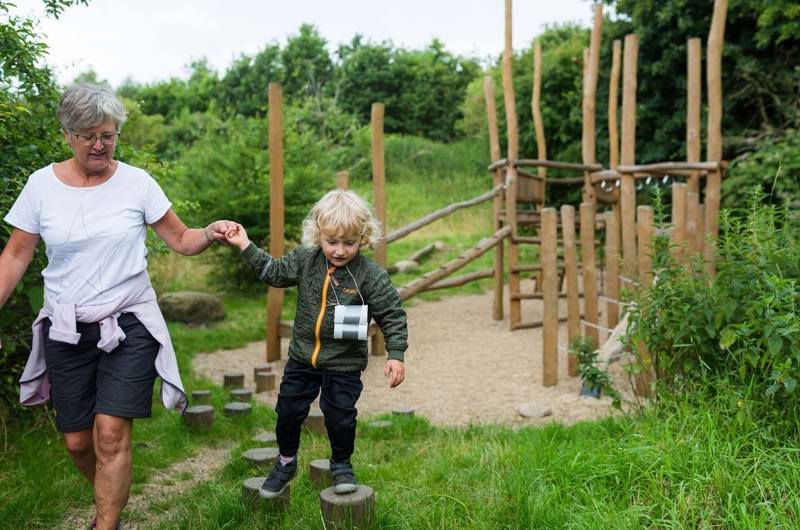 I Skovens sydlige del er aktivitetsniveauet højere, og du finder faciliteter, der understøtter leg og læring i naturlige omgivelser.