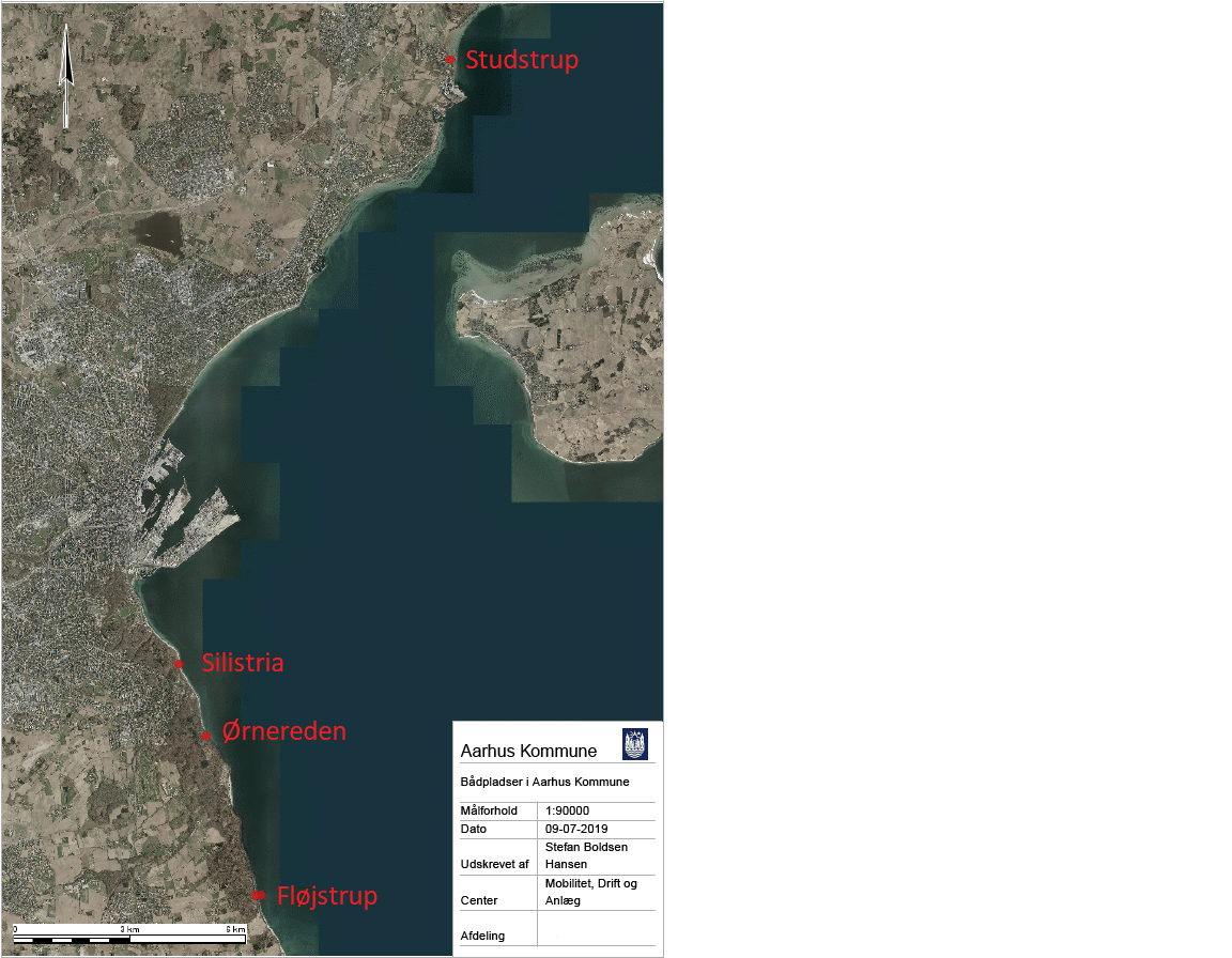 Aarhus Kommune administrerer udlejningen af 265 bådpladser fordelt på fire strandområder ved hhv. Studstrup, Silistria, Ørnereden og Fløjstrup.