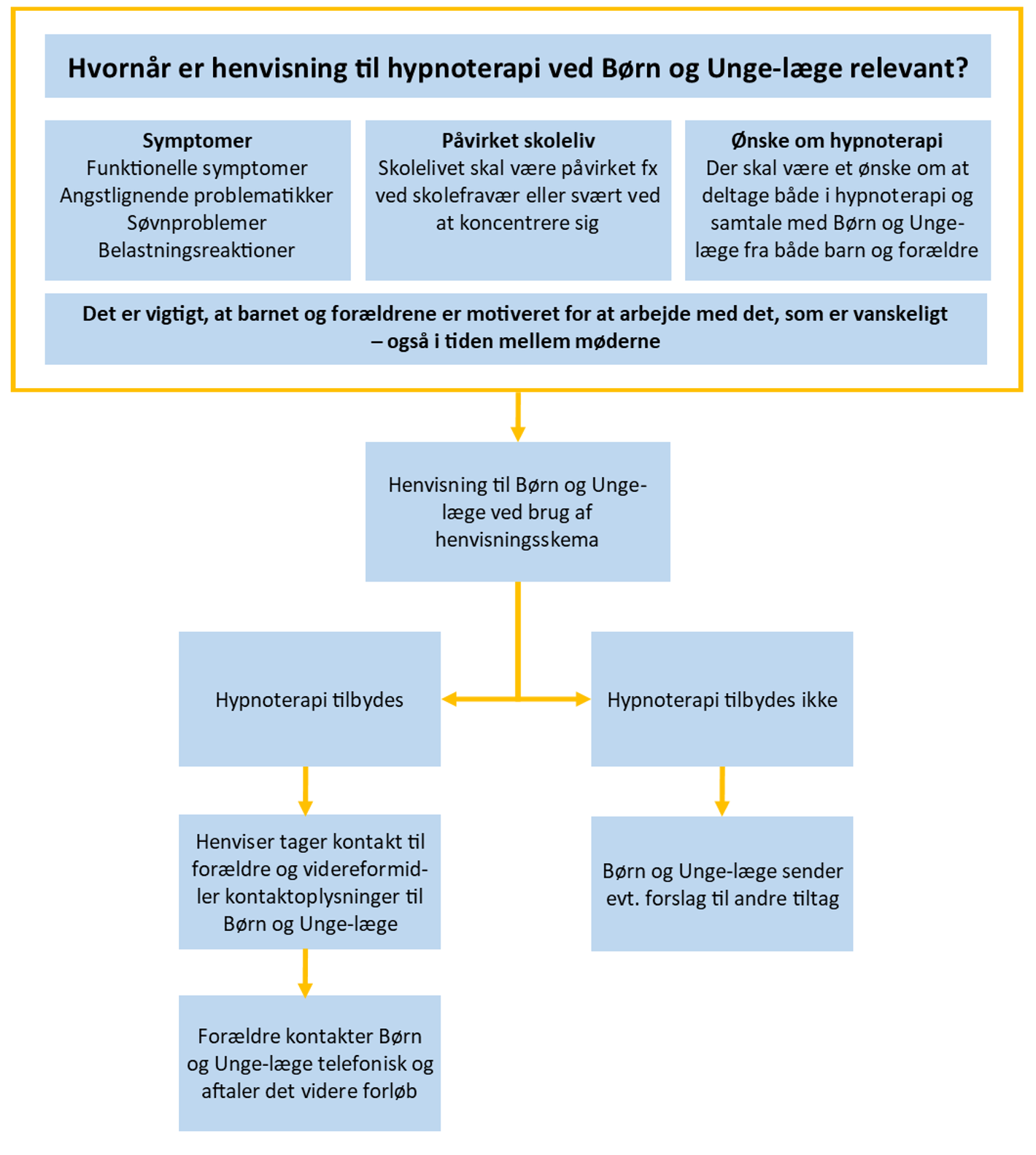 Henvisning til hypnoterapi foregår ved udfyldelse af henvisningsskema af følgende faggrupper: