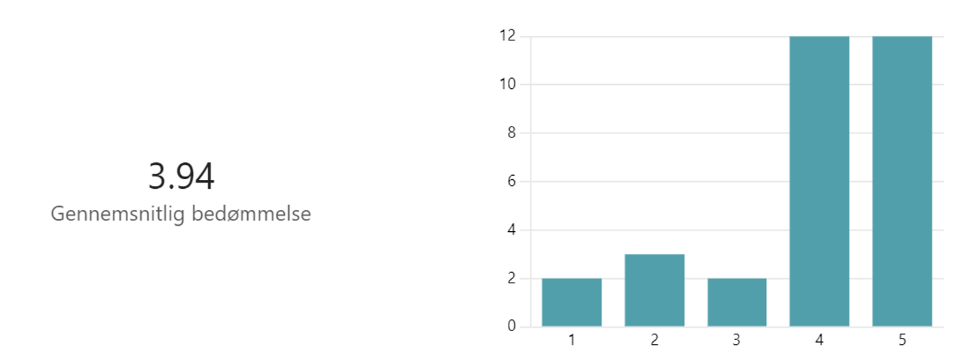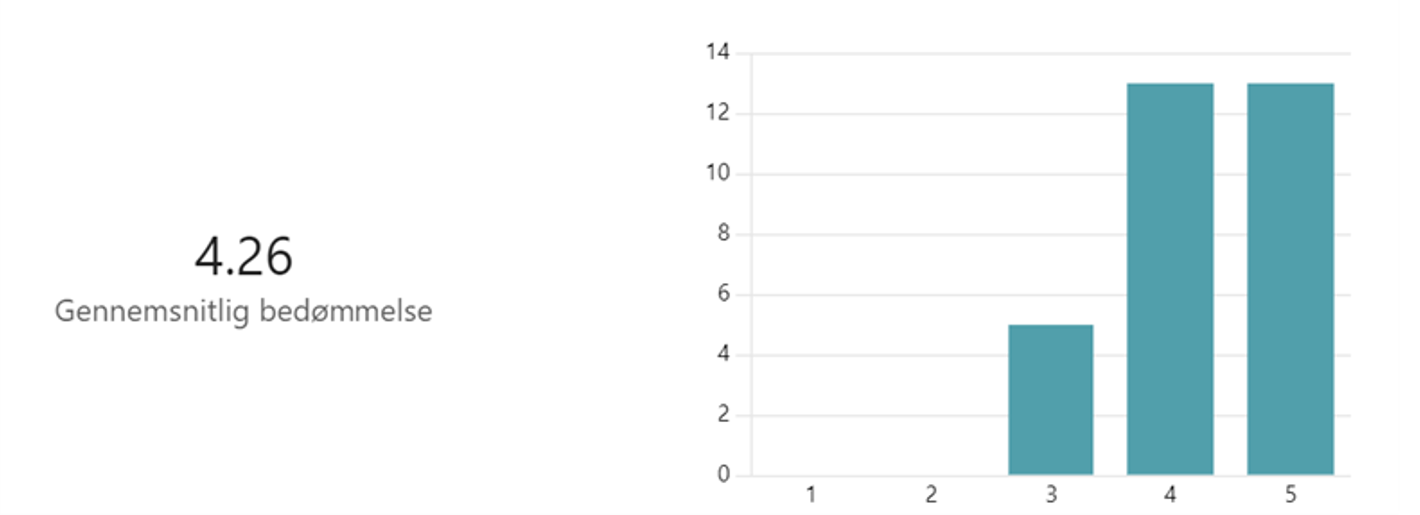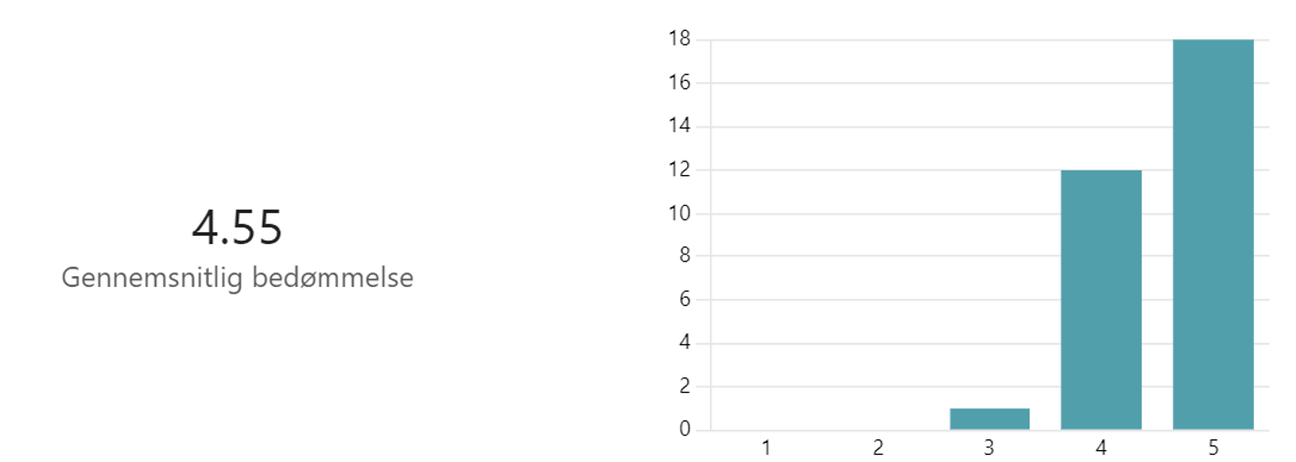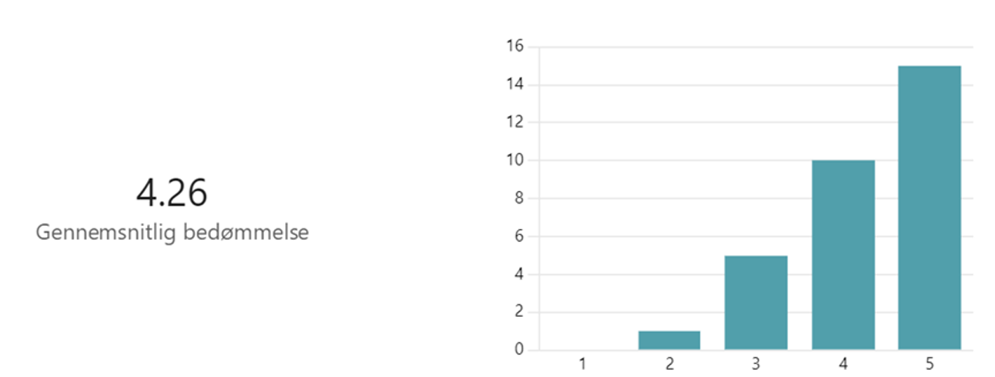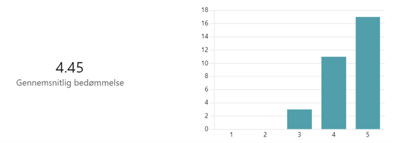 - ”Hvad synes du generelt om konceptet for sidste skoledag i afprøvningsperioden (de sidste tre år)?” er den gennemsnitlige bedømmelse 4,67 ud af 5.