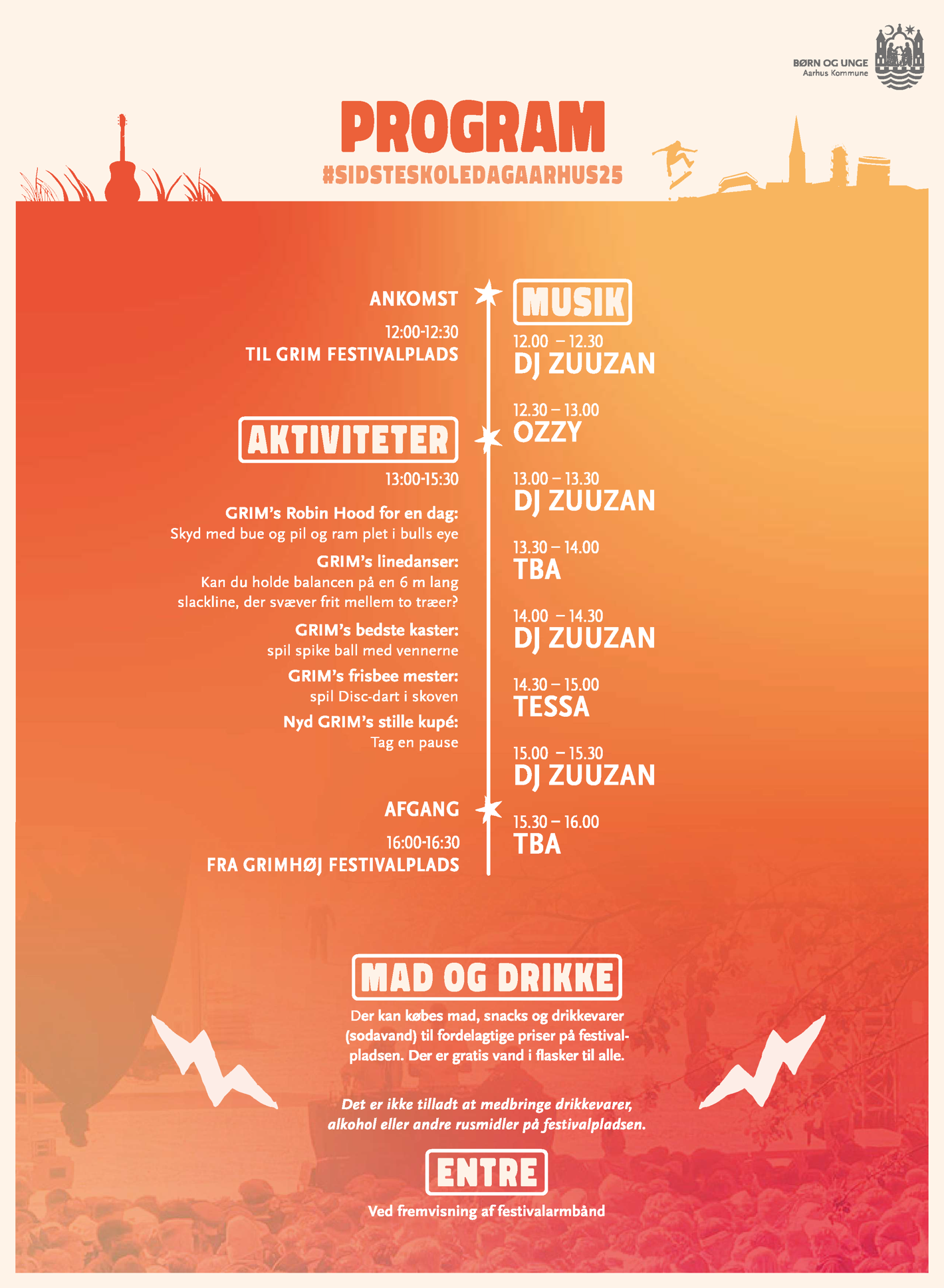Det er ikke tilladt at medbringe drikkevarer, alkohol eller andre rusmidler på festivalpladsen.