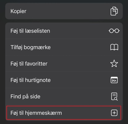 Bladr ned til 'Føj til hjemmeskærm' og vælg.