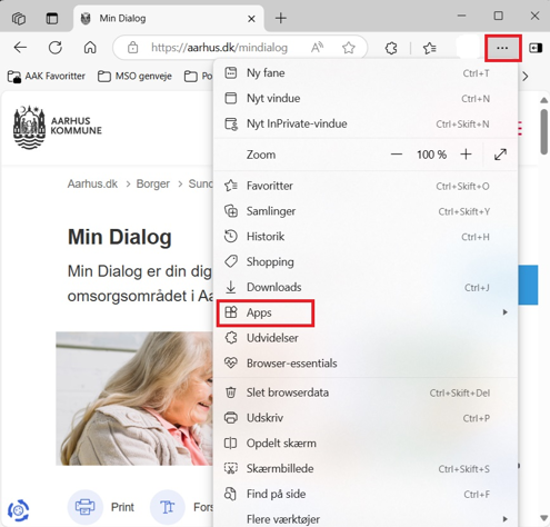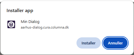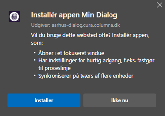 Første gang, du logger ind på Min Dialog, bliver du spurgt, om du vil gemme Min Dialog som en genvej. Siger du ja, kan du hente siden ned på din computer, smartphone eller tablet, så den fungerer som en app.