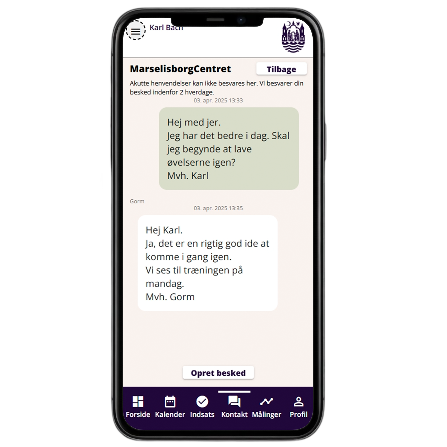 Det er en god ide at bruge beskedfunktionen til at lave en ny aftale. På den måde kan vi skrive til dig i Min Dialog med mulige datoer og tidspunkter.