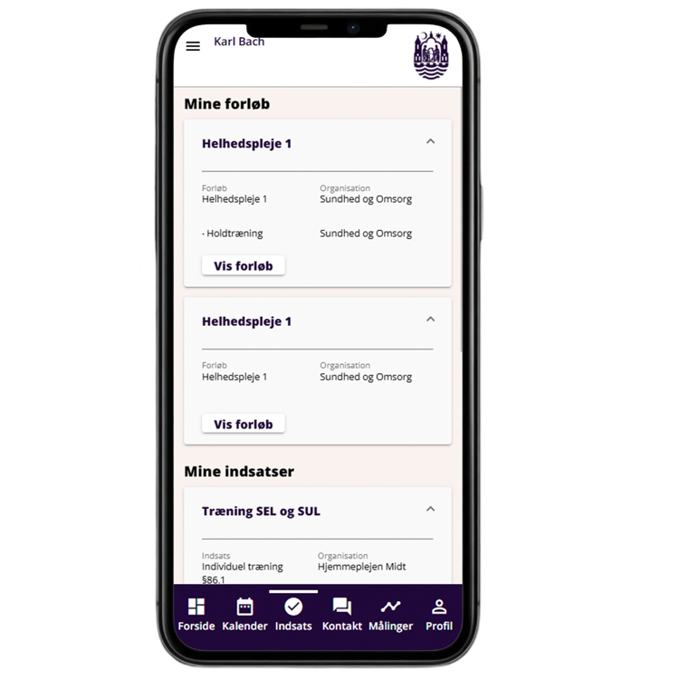 Under 'Indsats' kan du se, hvad du er bevilget af fx genoptræning, pleje og hjælpemidler fra Aarhus Kommune.