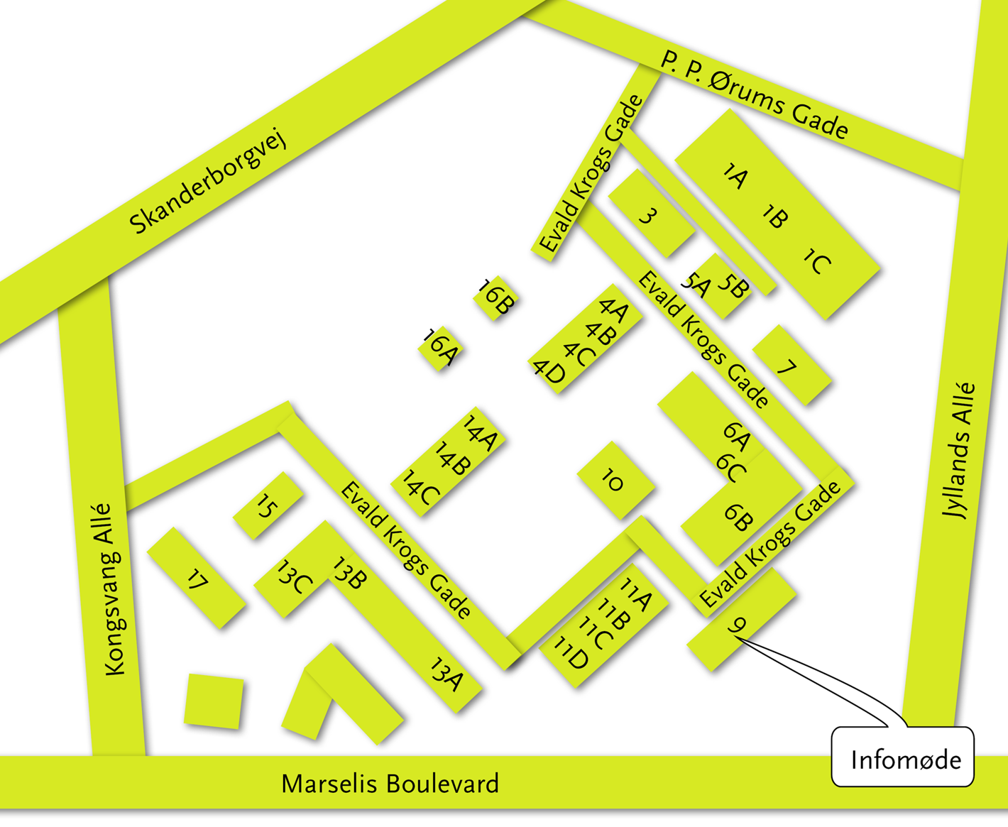 Billedet viser et kort over MarselisborgCentret og angiver, hvor infomødet finder sted.
