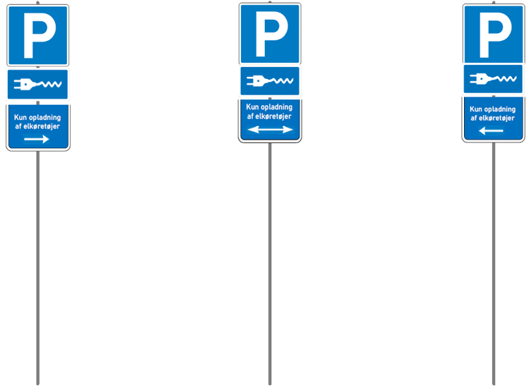 På steder hvor der er opsat en ladestander, men intet skilt med elbilsymbol, kan alle køretøjer parkere.