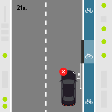 Det er ulovligt at parkere ud for en udkørsel fra en cykelsti. Hvis cykelstien løber langs kørebanen, så er det ulovligt at parkere ud for cykelstien eller 5 meter før udkørslen. Hvis udkørslen fra cykelstien er tværgående i forhold til kørebanen, så er det både ulovligt at parkere ud for cykelstien eller 5 meter på hver side af udkørslen.