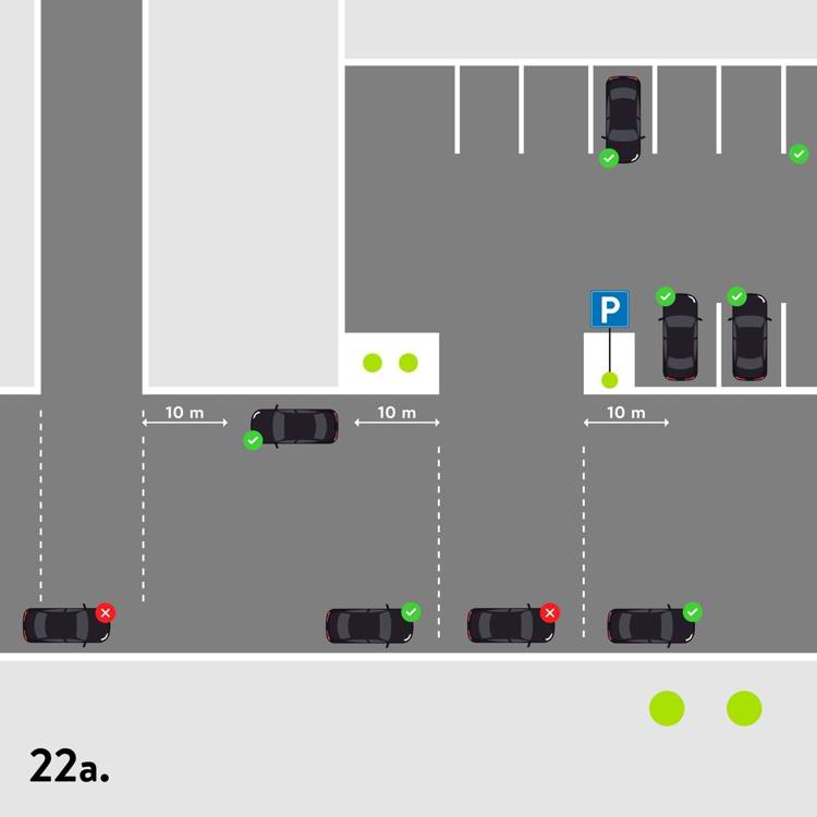Tegningerne nedenfor illustrerer flere eksempler på ulovlige parkeringer i vejkryds.