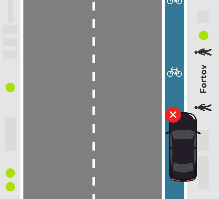 Nedenstående tegninger illustrerer ulovlige parkeringer på cykelsti, fortov og gangsti.