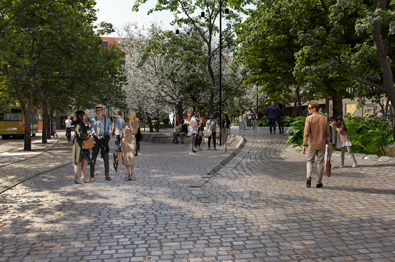 Der vil fremover stå cirka 25 træer på selve torvet og 70 træer yderligere i gaderne omkring torvet. Ombygningen omfatter nemlig også de tilstødende gader.