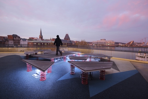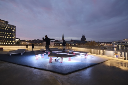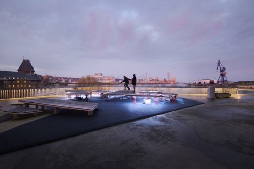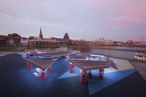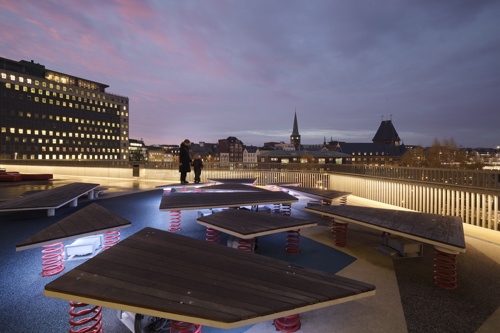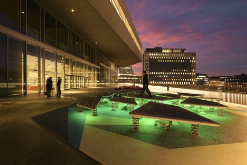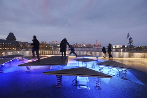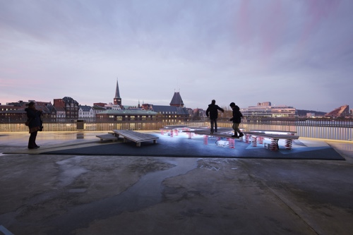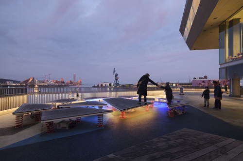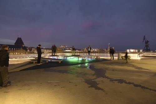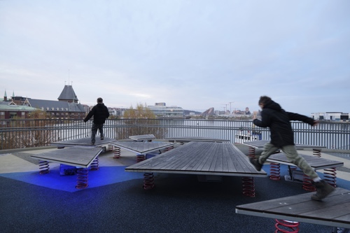 Legepladsen er placeret på den nordligste del af dækket, der omkranser DOKK1. De bevægelige isflager er udstyret med lys, lyd og sensorer, der bidrager til en engagerende oplevelse, når børn og voksne springer rundt på legepladsen. CAVI ved Aarhus Universitet har udviklet et system, der ved hjælp af bevægelsessensorer, 10 højttalere og næsten 8000 LED’er skaber en oplevelse, der leder tankerne hen på de nordlige dele af kloden. Installationen er dynamisk og foranderlig så besøgende aldrig oplever det samme to gange. De indbyggede sensorer bidrager til at isflagernes bevægelser ændrer på både lys og lyd, hvilket vil sige at når man går eller hopper på isflagerne, påvirker det direkte indholdet.