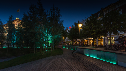 Belysningen kan ydermere kontrolleres via software og der kan vælges forskellige scenarier, alt efter behov og arrangementstype på pladsen.