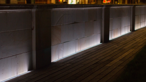 Light Line består således af en linie af lys-armaturer, som er indbygget i den indre kant af træ-opholdsstrukturen og følger pladsens kurve fra ende til anden. Dette suppleres af en belysning på de plantede træer på pladsen.