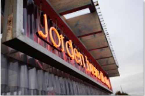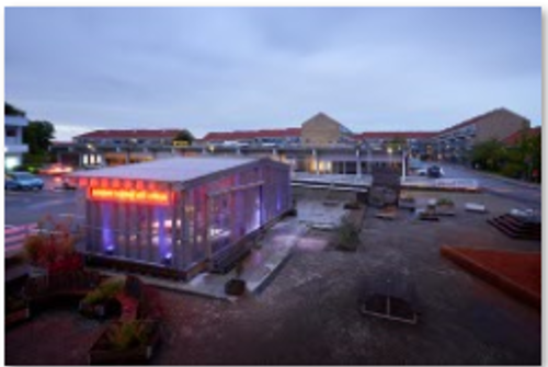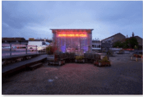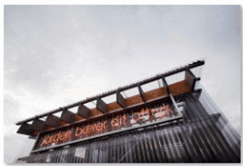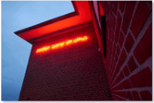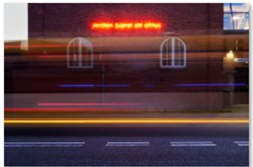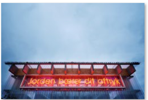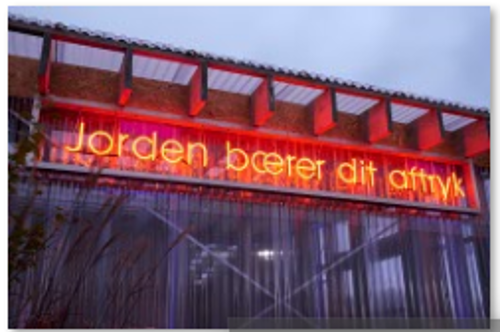 “Jorden bærer dit aftryk” is a well traveled neon artwork, by Aarhus-based neon artist Astrid Gjesing. The work has now found permanent placement in the city, this time in connection with a joint sound piece by Copenhagen-based sound designer and artist Sofie Birch.