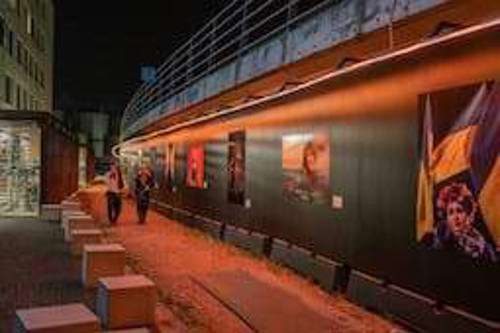 The open air-gallery is made up of a temporary wall structure, with photographic portraits, that are curated by Jyllandsposten, placed along it. The wall structure follows the building site, which is next to the headquarters of Jyllandsposten and creates a passageway that stretches all the way from Kalkværksvej and down to Sydhavnsgade. This is a long stretch of wall, which means there are a lot of portraits to delve into.