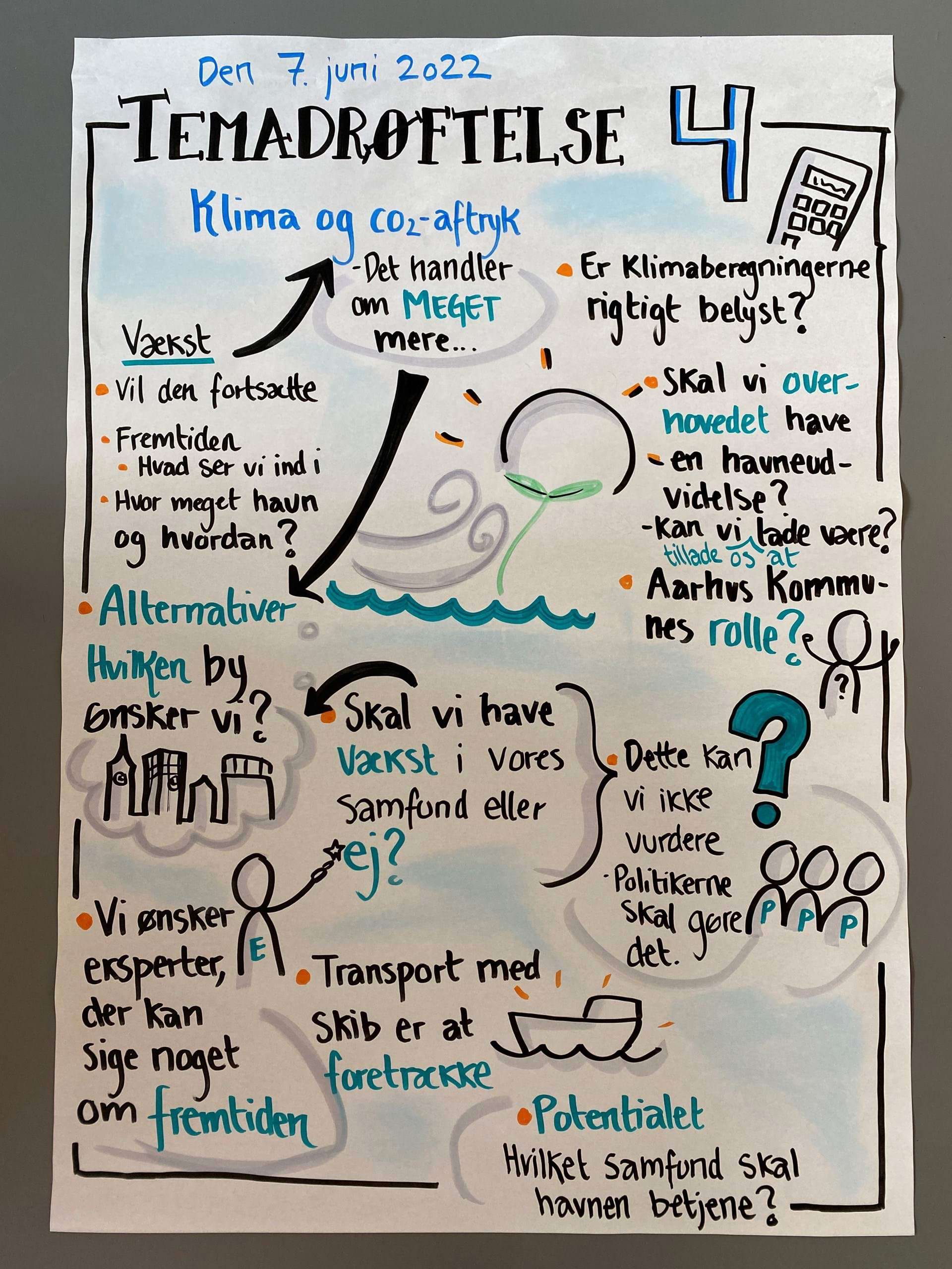 Et andet emne var en helt overordnet diskussion af, hvilken by Aarhus skal være. Her blev der spurgt, om det er smart planlægning af Aarhus at udvide havnen. Dette spørgsmål vil sammen med spørgsmålet om, hvordan projektet gavner klimaet, blive spillet ind i den videre belysning af temaet.