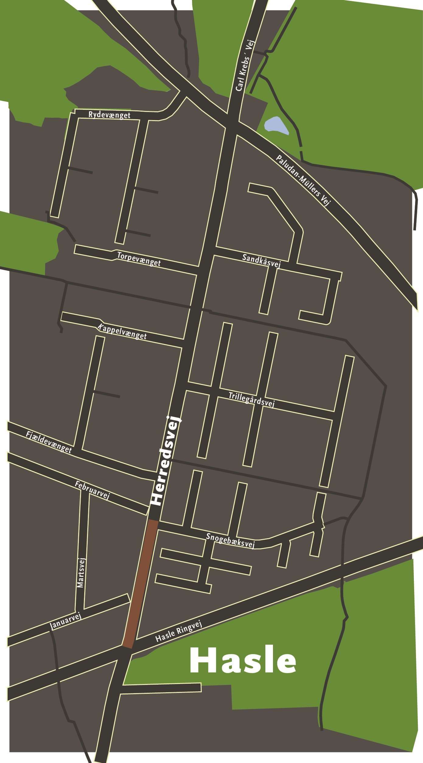 På Herredsvej bliver der bygget en støjmur fra Fjældevænget til ringvejen. Derfor er Herredsvej spærret i retningen fra Hasle Ringvej mod Paludan-Müllers vej fra d. 8. april kl. 18 til d. 13. april kl. 22. Der er omkørsel via Paludan-Müllers vej.