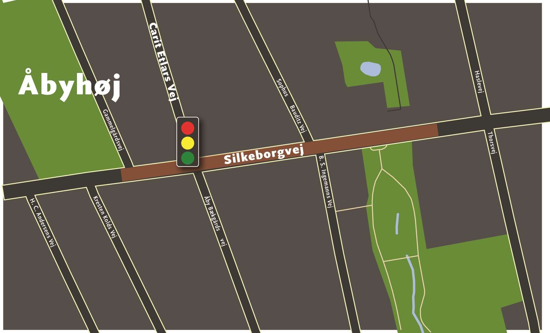 På Silkeborgvej arbejder Aarhus Vand, og derfor er det kun ét spor åbent i begge retninger fra 8. april kl. 18 til og med 13. april. Der bliver opsat signalanlæg ved Carit Etlars Vej, og man skal derfor regne med lidt længere rejsetid. Søren Frichs Vej kan bruges til omkørsel.