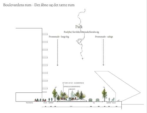 "Det er vitterligt et forsøg, og vi vil evaluere det løbende. Bernhardt Jensens Boulevard har et stærkt byarkitektonisk udtryk, som er vigtigt for Aarhus Ø’s identitet - og så er sigtelinjen fra Jette Tikøbsplads unik. Sigtelinjen fastholdes i siderne for de bløde trafikanter og med alleen med træer, og så tester vi, hvad det betyder, når vi bruger mellemrummet til at ’flette’ byrum og vej. Spørgsmålet er med andre ord, om vi kan skabe byrum, der ligger i lommer langs midten i stedet for et langt byrum, der ligger mellem to veje", siger stadsarkitekt i Aarhus Kommune, Anne Mette Boye.