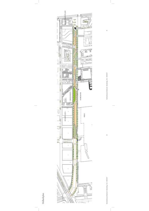 Anlægsarbejdet af hele strækningen vil tage et par måneder, men allerede nu påbegyndes første lomme foran Nicolinehus. Det er et grønt byrum med udsigt, der samtidig forbinder bydelen på tværs af Boulevarden og giver adgang til bylivet og vandaktiviteterne ved Bassin 7.