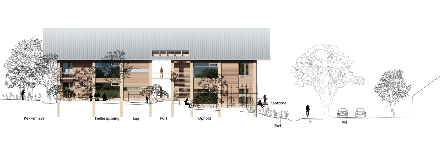 organiseret med længer i landskabet, der skaber mellemrum med fælles gårdrum med haver og naturbaseredet løsninger. Bygningerne står smukt, med identitetsskabende arkitektur, der understøtter fællesskab og har fokus på reduktion af CO2 og på gode arkitektoniske løsninger. Samlet støtter dette op om arkitekturpolitikkens ambitioner om stærke, mangfoldige bysamfund og bevægelsen mod en mere bæredygtig arkitektur.