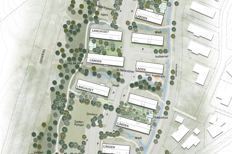 I Fællesskabet Serinedalen er en del af vores vision at skabe et autentisk og bæredygtigt hverdagsrum med særlig fokus på børnefamilier og seniorer. Vi ønsker at bygge så simpelt og klogt som muligt. En optimering og en
