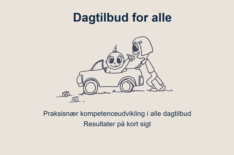 Alle dagtilbud er en del af et forløb med praksisnær kompetenceudvikling i 6 måneder, hvor ledere og medarbejdere arbejder med oplæg og øvebaner med henblik at øge deltagelsesmulighederne for alle børn. I 2026 vil alle dagtilbud have haft forløb med Dagtilbud. Dagtilbud for alle er tilrettelagt med afsæt i forskning samt hidtidige tiltag i hele Børn og Unge og lokalt i dagtilbuddene.