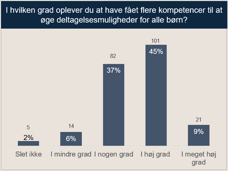 Medarbejdernes oplevelse at have flere kompetencer til at øge deltagelsesmulighederne for alle børn.