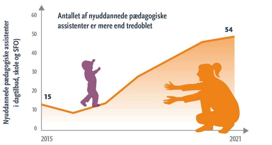 Dog tegner der sig en opadgående kurve, når det kommer til ansættelse af nyuddannede pædagogiske assistenter. Fra 2015 til 2021 er der sket mere end en tredobling af antallet, der bliver ansat i Børn og Unges dagtilbud, skoler og SFO'er.