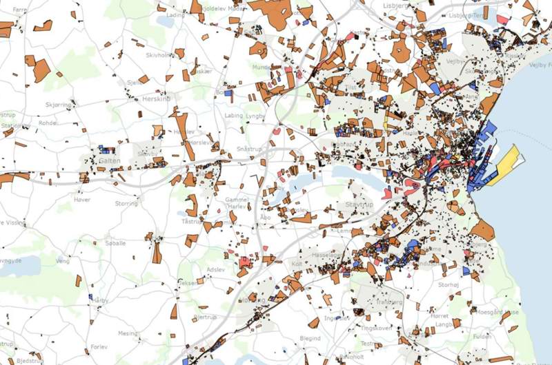 Se kort med kortlagte ejendomme i Aarhus Kommune.