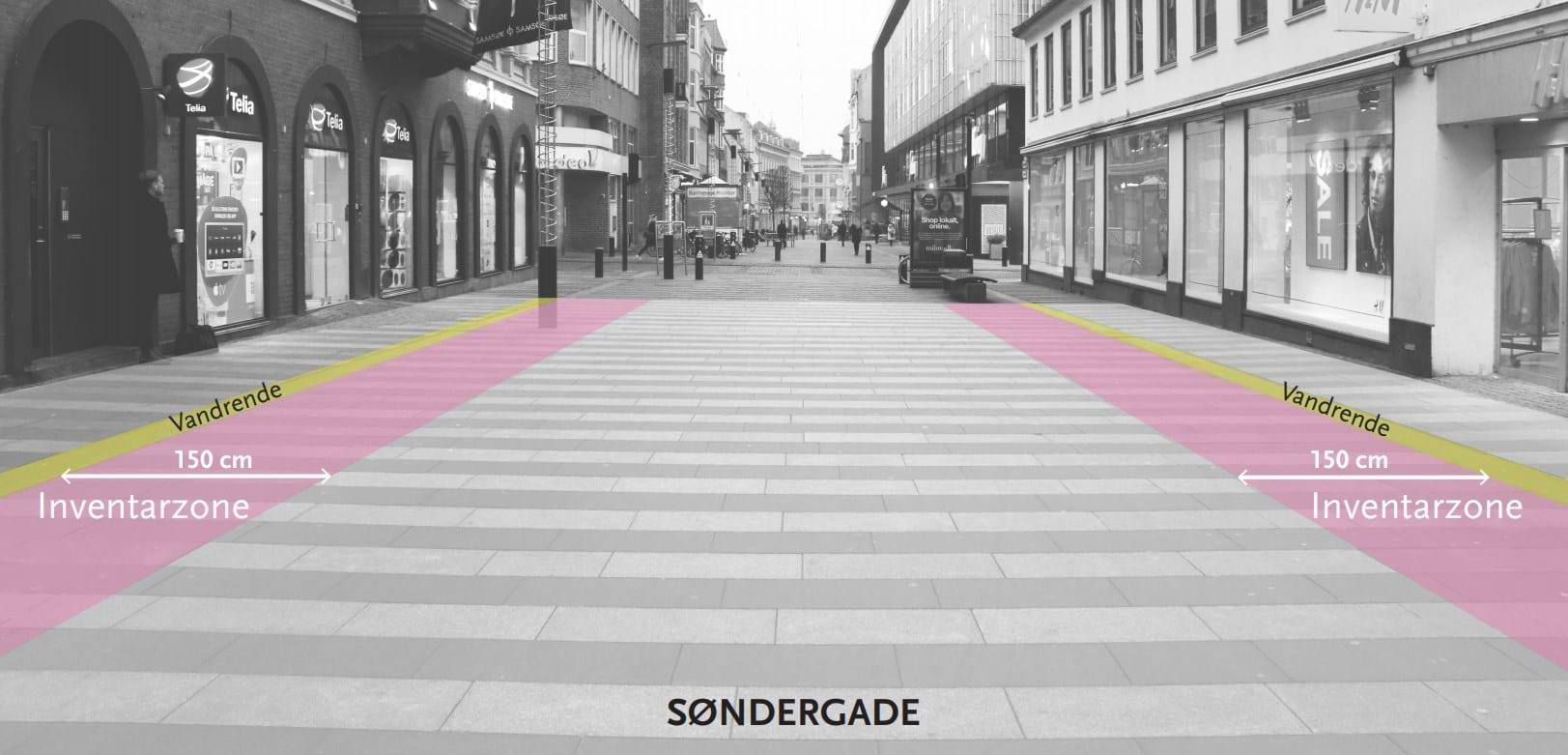 Af hensyn til fremkommeligheden mellem vareudstillingerne og helhedsindtrykket gennem Strøget, skal din butik som minimum friholde 50 cm mellem butikkens vareudstillinger samt til butikken ved siden af.
